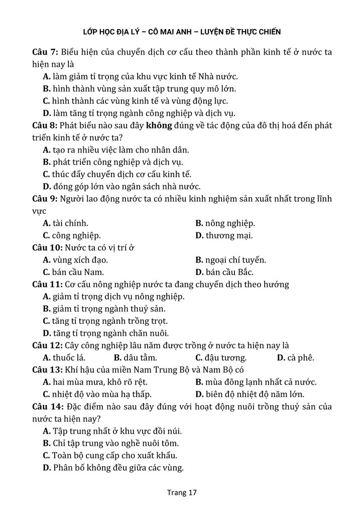 Gửi tặng các em đề thi thử - Xuất phát sớm Luyện đề (kèm đáp án) do Lớp học Địa lý cô Mai Anh biên soạn File DPF: TẠI ĐÂYVideo chữa đề: TẠI ĐÂYChúc các em học...