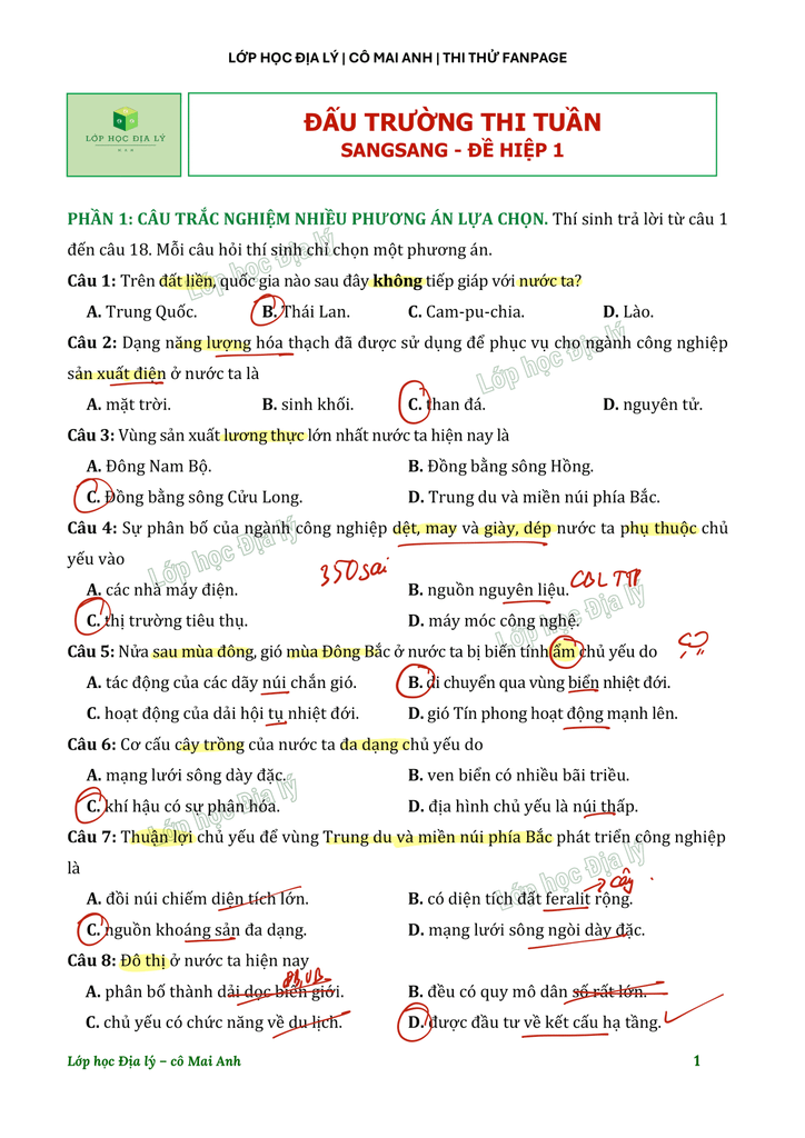 Gửi tặng các em đề thi thử - Xuất phát sớm Luyện đề (kèm đáp án) do Lớp học Địa lý cô Mai Anh biên soạn File DPF: TẠI ĐÂYVideo chữa đề: TẠI ĐÂYChúc các em học...