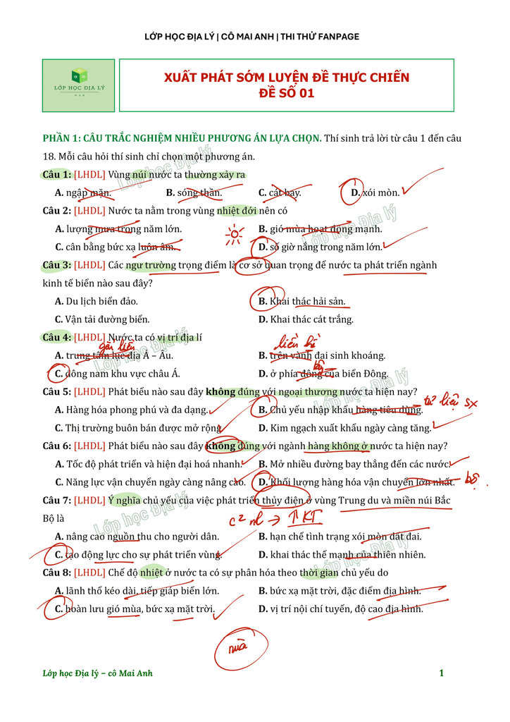 Gửi tặng các em đề thi thử - Xuất phát sớm Luyện đề (kèm đáp án) do Lớp học Địa lý cô Mai Anh biên soạn File DPF: TẠI ĐÂYVideo chữa đề: TẠI ĐÂYChúc các em học...