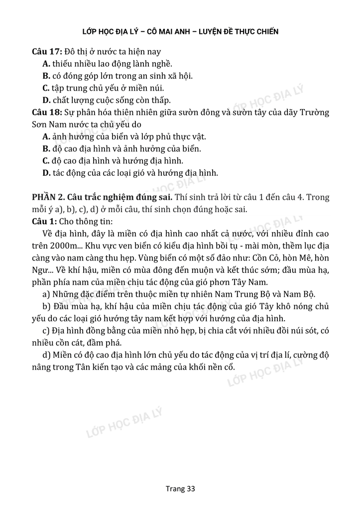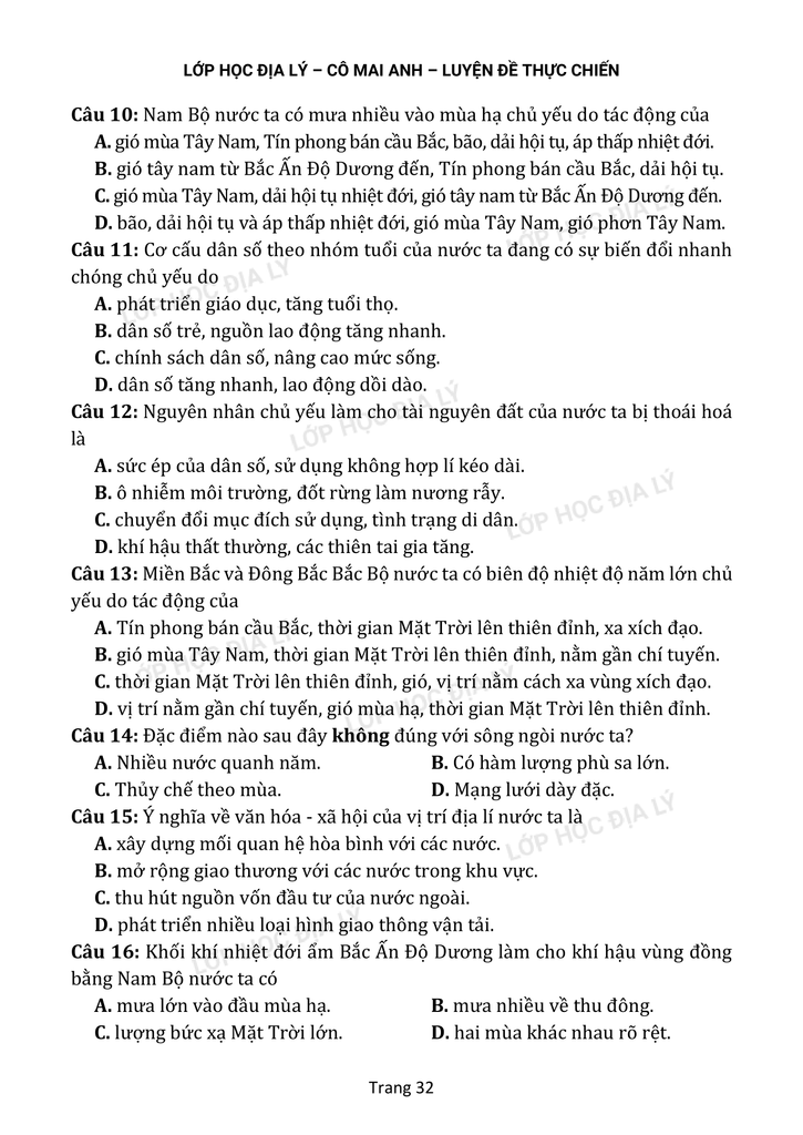 Gửi tặng các em đề thi thử - Xuất phát sớm Luyện đề (kèm đáp án) do Lớp học Địa lý cô Mai Anh biên soạn File DPF: TẠI ĐÂYVideo chữa đề: TẠI ĐÂYChúc các em học...
