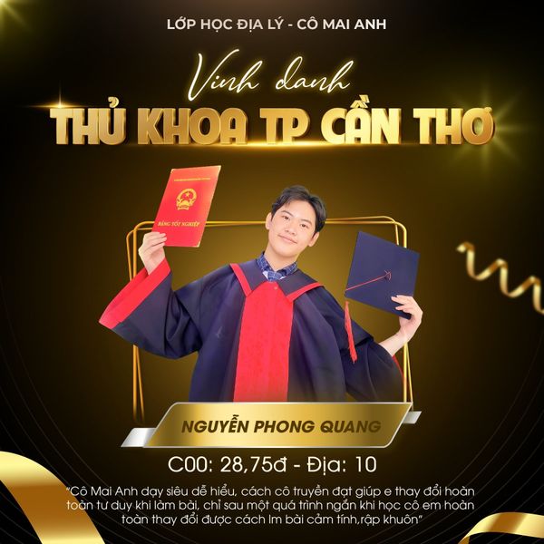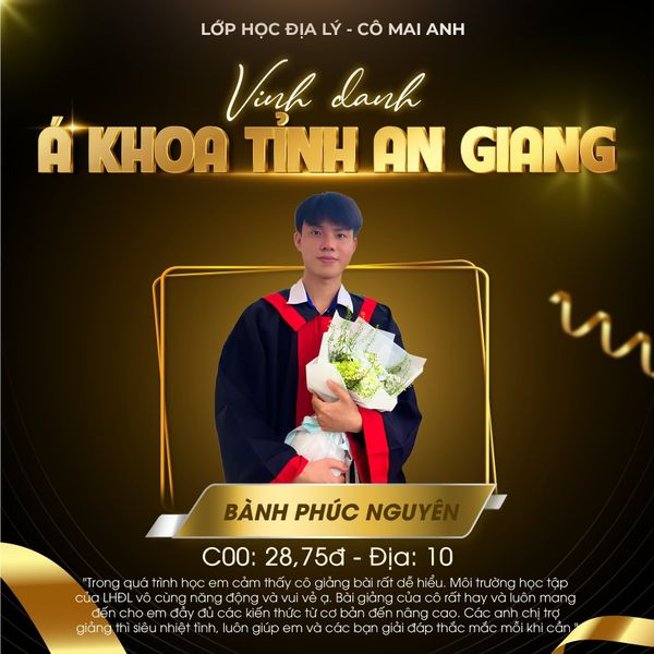 VINH DANH THỦ KHOA, Á KHOA CÁC TỈNH - THÀNH PHỐ TRÊN TOÀN QUỐC KHOÁ 2025 - Lớp Học Địa Lý cô Mai Anh